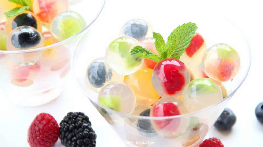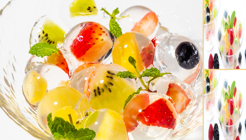 เมนู วุ้นลูกแก้วผลไม้สด จะเป็นเมนูของหวาน หรือของกินเล่น อย่างวุ้นผลไม้สดชิ้นสี่เหลี่ยมอาจจะเห็นมากมายตามท้องตลาด ลองทำใส่พิมพ์ทรงกลมวางขายดูน่าสนใจกว่าเยอะ โดยตัววุ้นเป็นสีขาวไม่ต้องเติมสีใด ๆ เพราะจะทำให้เห็นผลไม้โดดเด่นน่ารับประทานมากขึ้น