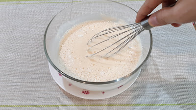 1. ผสมแป้งทอดกรอบกับน้ำเย็น และไข่ไก่ คนผสมให้เข้ากันเป็นเนื้อเดียว ลักษณะแป้งที่ได้จะเป็นครีมข้นคล้ายแป้งเปียก ก็เป็นอันใช้ได้ค่ะ เสร็จแล้วก็ล้างผัก หั่นเป็นชิ้น ๆ พอดีคำ