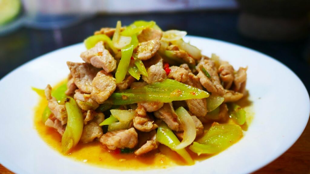 เมนูหมูผัดพริกหยวก เคี้ยวนุ่มจากเนื้อสัตว์ เข้ากันดีกับรสเผ็ดบาง ๆ
