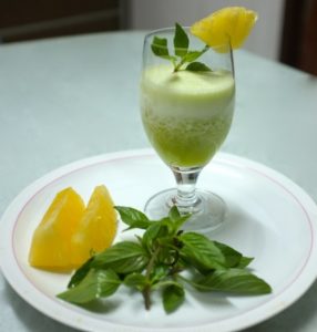 เครื่องดื่มชนิดนี้ก็คือ น้ำสับปะรดปั่นใบโหระพา