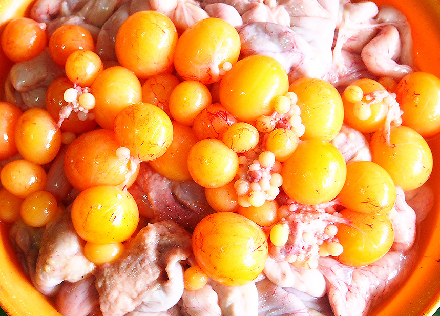 – ควรนึ่งพวงไข่ให้สุกก่อน จะทำให้ไม่แตกเวลาต้ม