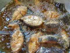 1.ตั้งกระทะให้ร้อนใช้น้ำมันเยอะ นำปลาดุกหั่นเป็นชิ้นแล้วนำไปทอดให้กรอบตักพักใส่จานไว้เกลี่ยเนื้อปลาให้กระจายกัน ปลาจะได้ไม่เกาะกันจนเกินไป และห้ามคนเด็ดขาด ปลาจะเละ และติดกระทะได้