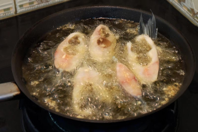 – ตั้งน้ำมันให้ร้อน นำปลานิลลงทอดจนสุก ตักพักบนตะแกรงให้สะเด็ดน้ำมัน