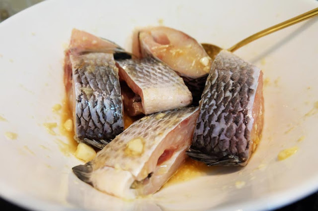 – หั่นปลาเป็นชิ้นแบบขวางและล้างให้สะอาด