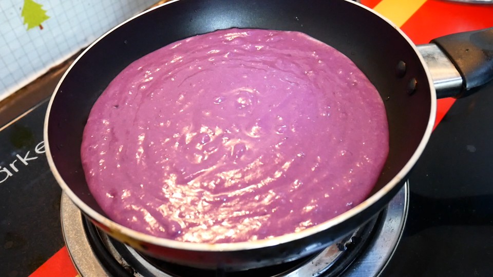 1.นำมันม่วงปอกเปลือก หั่นเป็นชิ้นแล้วนำไปนึ่งจนสุก