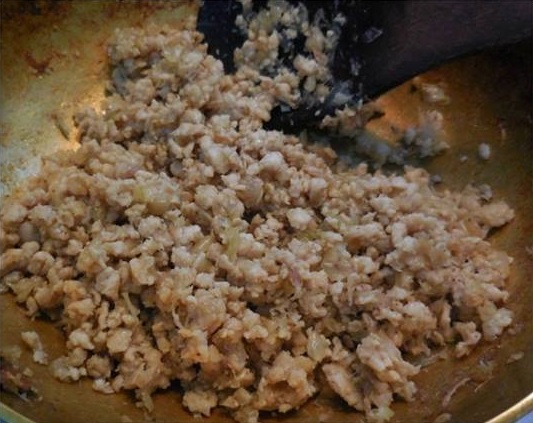 1.เริ่มจากการตั้งกระทะใส่น้ำมันที่จากการเจียวกระเทียม ใส่รากผักชี กระเทียม พริกไทยที่โขลกละเอียด เอามาผัดกับน้ำมันให้หอม แล้วใส่ไก่สับลงไปผัดพอสุก