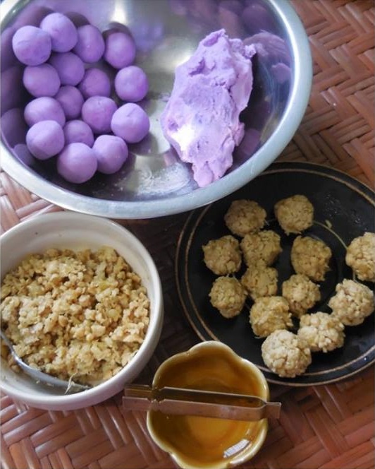 ส่วนของแป้งขนมช่อม่วง และเครื่องเคียง