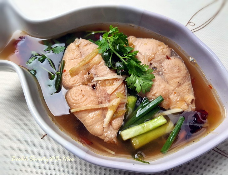 6.ปรุงรสแล้วรอให้น้ำแกงเดือดอีกครั้ง จึงใส่เนื้อปลาลงไปต้ม ใส่ปลาแล้วห้ามคนแกงนะคะ ไม่เช่นนั้นจะมีกลิ่นคาว รอให้เนื้อปลาสุกดี ชิมอีกครั้ง ขาดรสใดปรุงเพิ่ม เปรี้ยว หวาน เค็ม