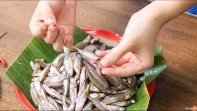 1.นำปลาซิวมาล้างทำความสะอาด และเอาเศษไม้หรือสิ่งสกปรกออกไป โดยเราจะนำปลาซิวมาบีบไส้และเครื่องในของปลาออก เพื่อไม่ให้มีรสชาติขมเวลากินค่ะ