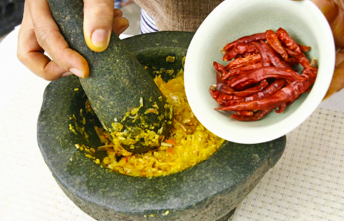 1.โขลกเครื่องแกงรวมกันให้ละเอียด
