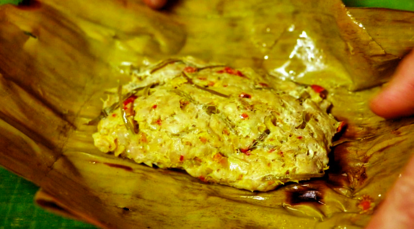 7.แกะห่อใบตอง ก็จะได้แอ็บหมู แบบอร๊อย อร่อย จัดแอ็บหมูใส่จาน เป็นกับข้าวพร้อมทาน