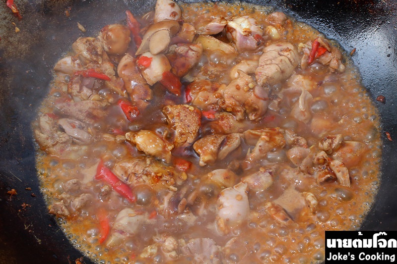 -เติมน้ำเล็กน้อยเนื่องจากเครื่องในไก่ค่อนข้างสุกยากจึ้งต้องเคี่ยวนิดหน่อย