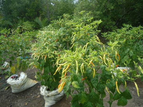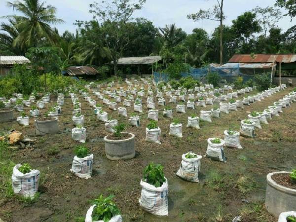 8. เมื่อต้นพริกหมดอายุแล้วก็ยกเอาดินในกระสอบเก่านั้นออกมาฆ่าเชื้อโดยการตากแดดและทำใหม่วนกันแบบเดิม