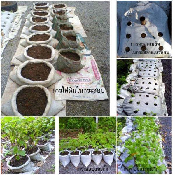 1. หากระสอบตามจำนวนที่ต้องการมาได้เลย อยากจะปลูกกี่กระสอบก็เตรียมมาเท่านั้น