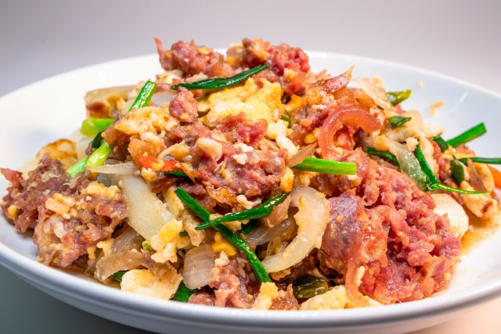 แหนมผัดไข่ หรือ ไข่ผัดแหนม รสเปรี้ยวกลิ่นหอม อร่อยจนต้องซี้ดปาก