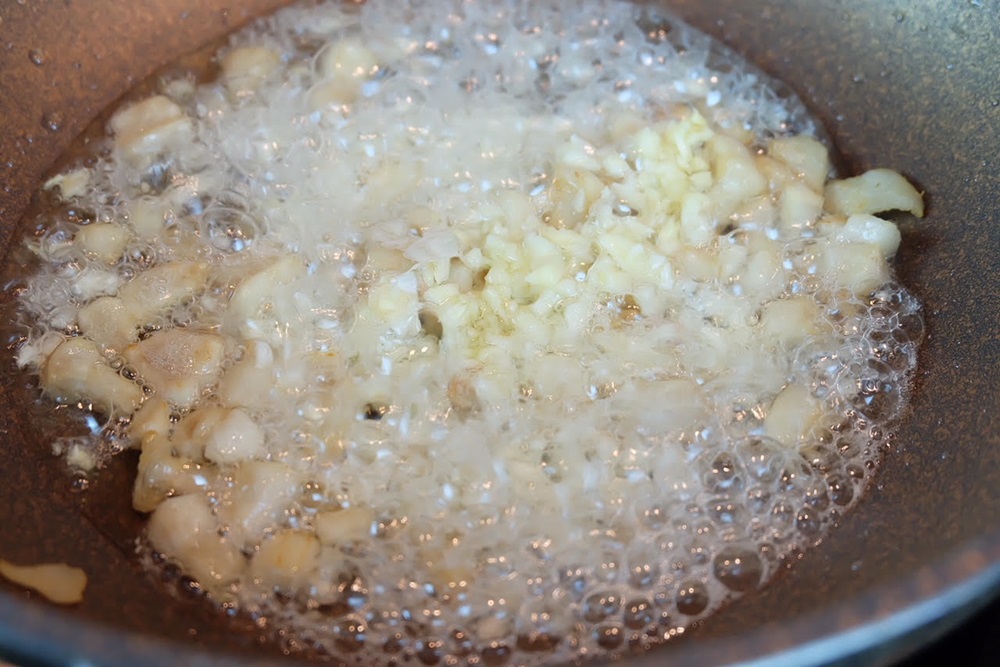 -เริ่มจากเจียวมันหมูก่อนค่ะ พอมันเริ่มเหลือง ใส่กระเทียมลงไปเจียวด้วยกัน จนได้สีเหลืองกรอบ ตักพักไว้ให้