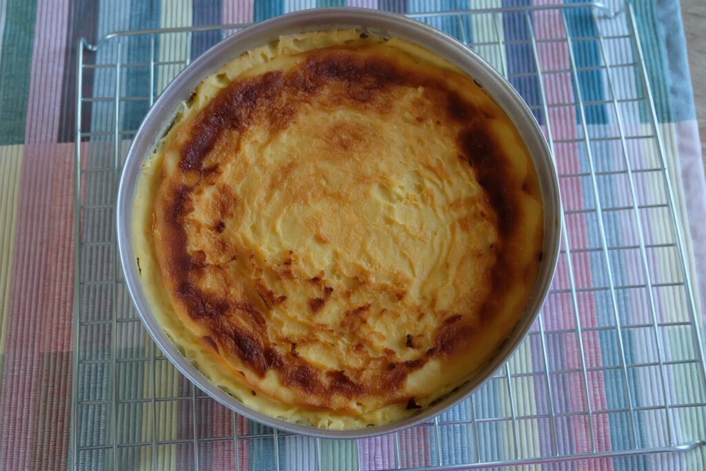 -จากนั้นนำเข้าเตาอบด้วยวิธีรองน้ำ ใส่น้ำร้อนที่ถาดรอง อบไฟบน-ล่าง 180องศา 50-60นาที