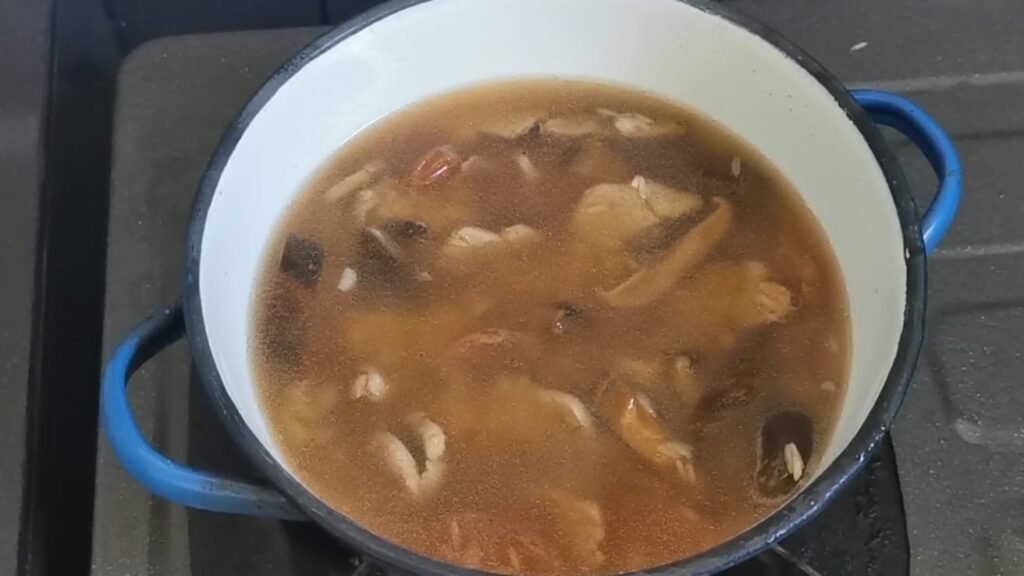 เห็ดหอมแห้ง 5-6 ดอก แช่น้ำร้อน หั่นชิ้น