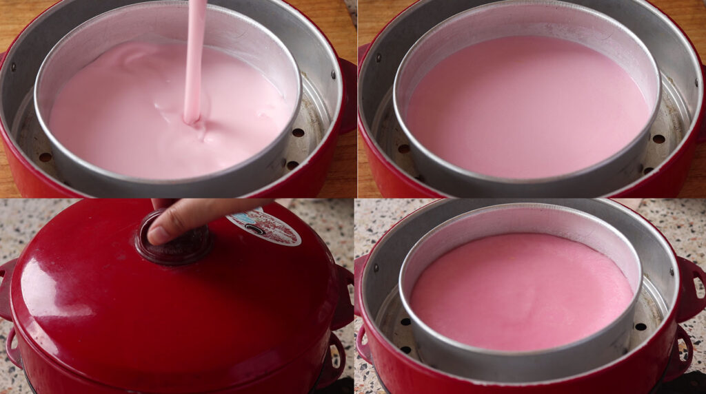 4.เทใส่พิมพ์ นึ่งประมาณ 15-20 นาที