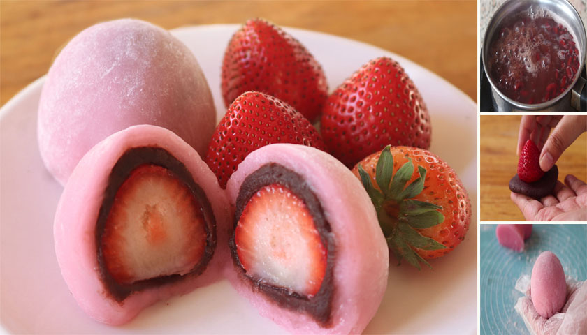 ขนมไดฟุกุสตรอเบอร์รี่ถั่วแดง อร่อยแป้งนุ่มรสชาติหวานกำลังดี