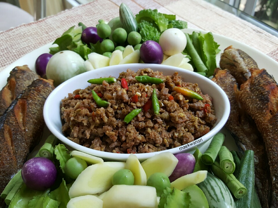 4.ตักใส่ถ้วยโรยหน้าด้วยพริกขี้หนู เสิร์ฟพร้อมปลาช่อนแดดเดียวและผักสด…มันเลิศมากกกกก