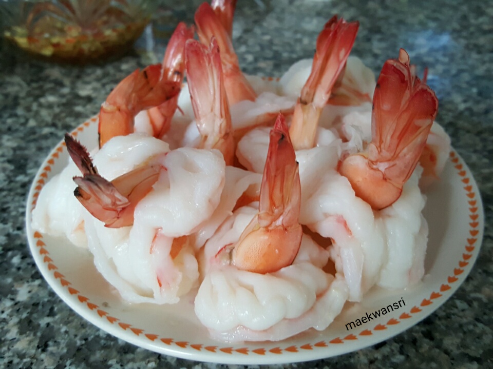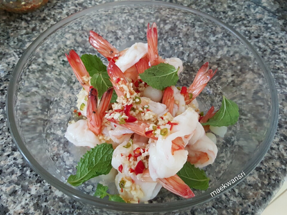 เมื่อเราเบื่ออาหารประเภท แกง ผัด ทอด อยากกินอาหารประเภทจี๊ดจ๊าดและเพิ่มความสดชื่นให้กับชีวิตสักหน่อย จึงมาลงเอยที่ “กุ้งนึ่งมะนาว” ทำก็ง่ายไม่เสียเวลา เราใช้เวลาในการปรุงไม่เกิน 10-15 นาที