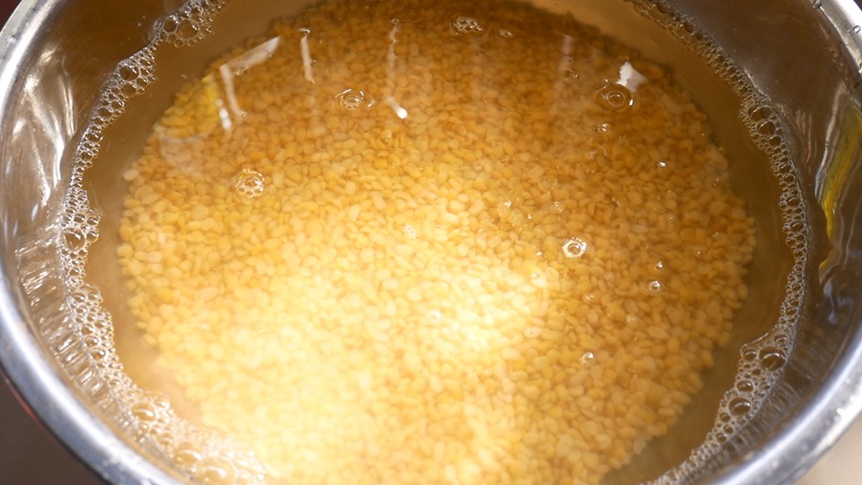 1. นำถั่วมาล้างน้ำให้สะอาด แล้วแช่น้ำทิ้งไว้ประมาณ 4 ชั่วโมง
