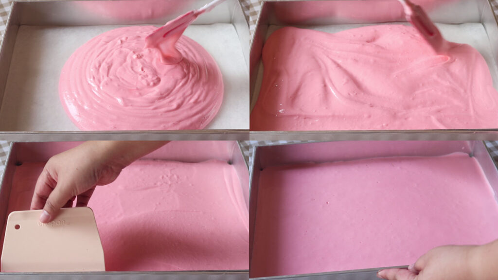 5.เทใส่ลงไปในพิมพ์ขนาด 11×15 นิ้วเคาะพิมพ์ไล่ฟองอากาศ