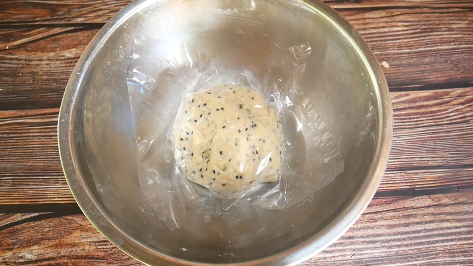 3. เมื่อเข้ากันดีแล้วให้ใช้พลาสติกคลุมปิดแป้งไว้ และพักแป้งไว้ซักครู่