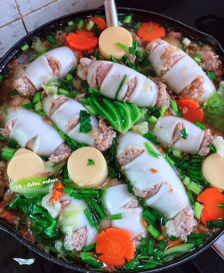 เลยก็ว่าได้ เพราะน้ำซุปหวานๆ ซดร้อนๆ พร้อมเนื้อปลาหมึกหนุบๆ ที่ถูกสอดไส้ด้วยหมูสับ เป็นรสสัมผัสที่ชวนที่