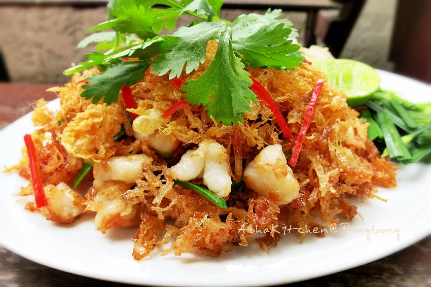– รับประทานพร้อมกับใบกุ่ยช่าย และถั่วงอก ก่อนรับประทานบีบน้ำมะนาวลงไปด้วย เป็นอย่างไรบ้างคะ หมี่กรอบแบบโบราณ แตกต่างจากที่เคยเห็นเขาขายกันทั่วไปไหมคะ หมี่กรอบของเราไม่ออกสีแดงแจ๋เหมือนบางที่ ที่ขายกันแน่นอนค่ะ ลองมาทำสูตรนี้ทานรับลองติดใจคค่ะ