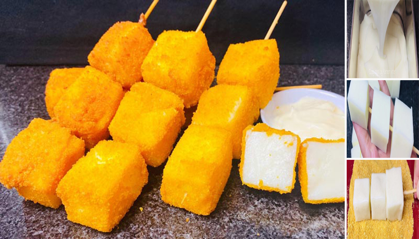 เมนูนมสดทอด อาหารว่างสีเหลืองทองกรอบนอกนุ่มใน ไม่ต้องใส่เนยกับวิปปิ้งครีมก็อร่อย พอเซตตัวก็จับเสียบไม้แล้วคลุกเกล็ดขนมปังสีทอง สุดท้ายเอาไปทอดจนสุก จะโรยไอซิ่ง จิ้มกับมายองเนส ซอสมะเขือเทศ หรือกินเปล่า ๆ ก็อร่อย สูตรจาก คุณแขมร อินเตอร์ สมาชิกเว็บไซต์พันทิป