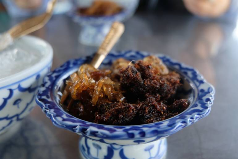 - เนื้อปลาย่าง หรือปลาแห้งโขลก 1 ถ้วย