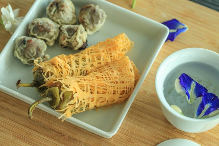 - ส่วนผสมไส้ (สามารถใช้ส่วนผสมลูกกะปิทอดได้)