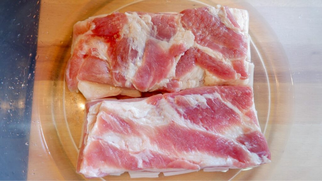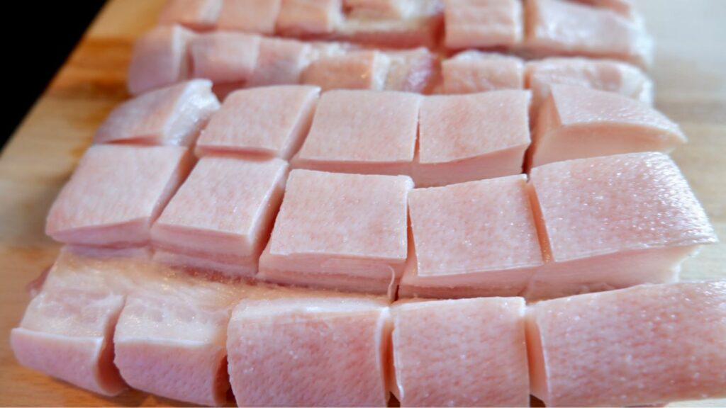 1. นำหมูสามชั้นมาล้างให้สะอาด พักให้สะเด็ดน้ำ