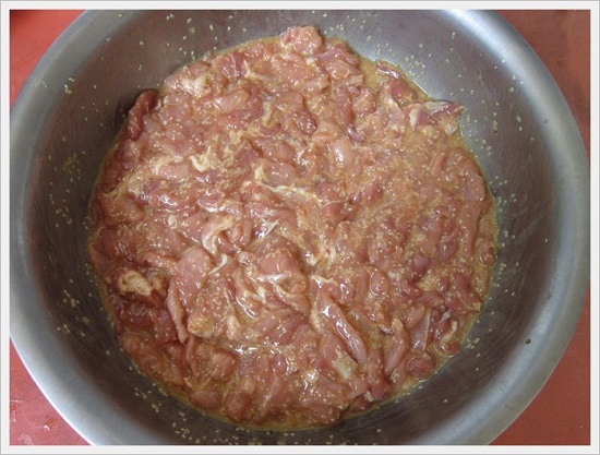 1.เตรียมเนื้อตามที่เราต้องการ จะเป็นเนื้อหมู เนื้อวัว หรือเนื้อไก่ ก็ได้ตามใจชอบ ควรแล่เนื้อให้บางๆเป็นชิ้นๆ