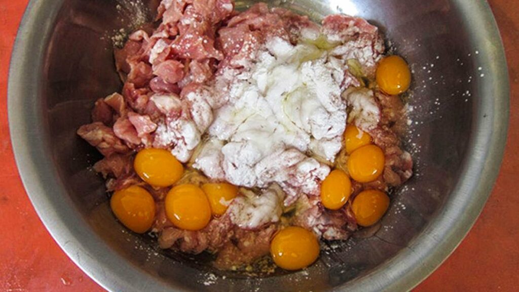 3.ไข่ไก่ (เนื้อเยอะใช้ไข่ประมาณ 5 ฟอง เนื้อน้อยใช้แค่ 3 ฟองก็ได้)