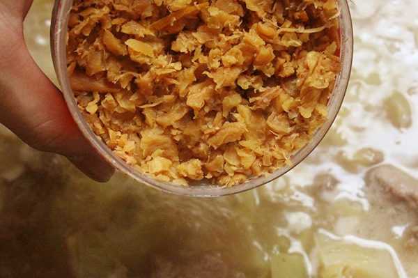 2.รอจนน้ำเดือดอีกครั้งใส่กระดูกหมูที่เตรียมไว้พร้อมกับผงปรุงรส โดยต้มกระดูกหมูให้เปื่อยนาน 45-60 นาที