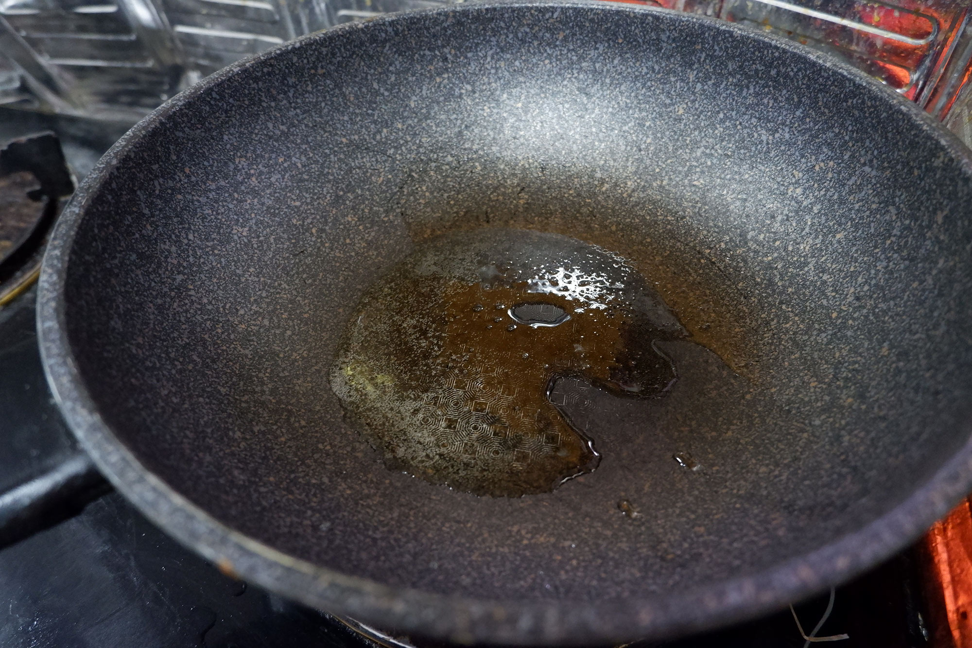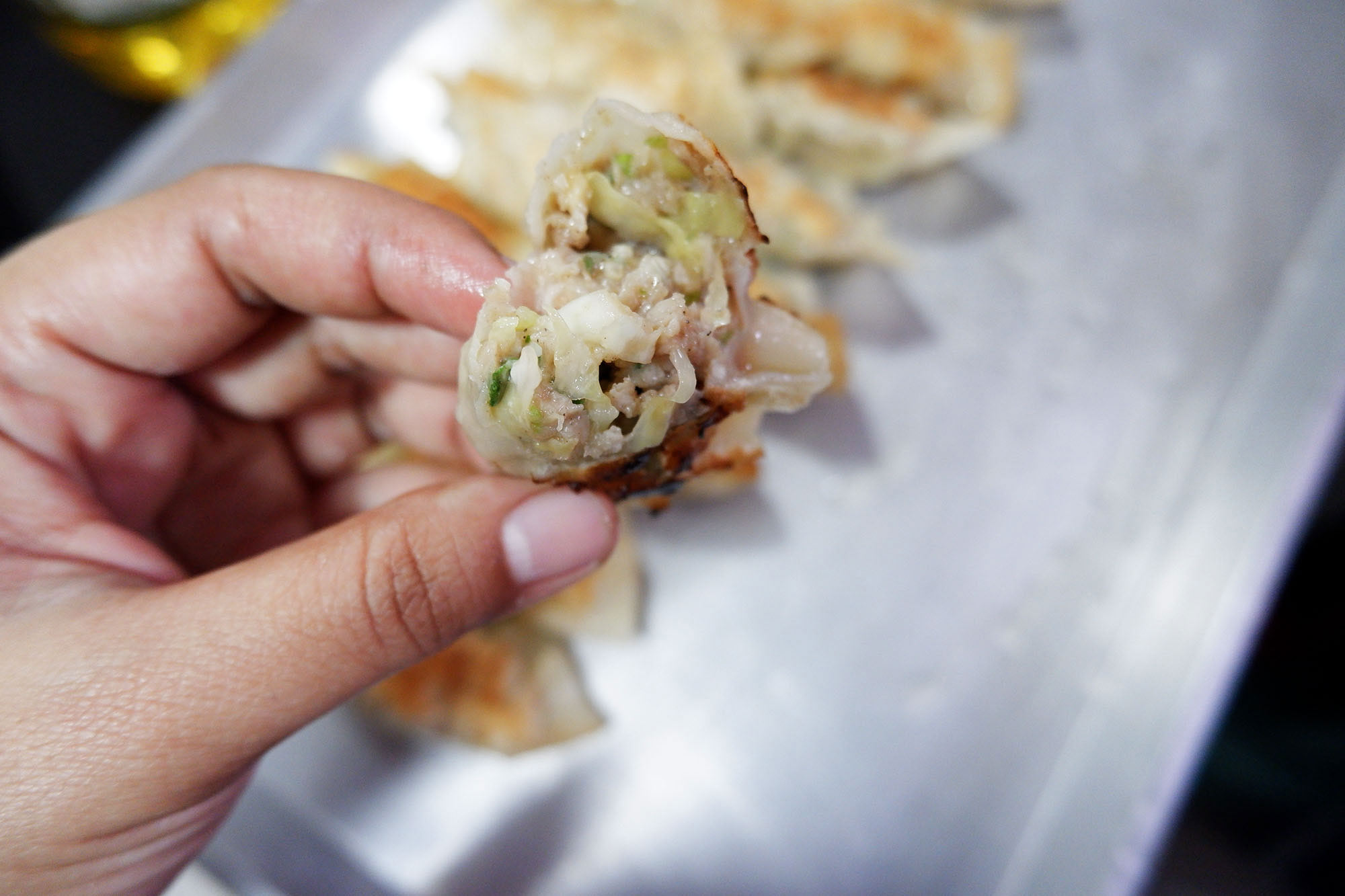 – ต่อมาเตรียมทอดค่ะ ตั้งกระทะใส่น้ำมันเล็กน้อยให้พอร้อน วางตัวเกี๊ยวซ่าลงไป
