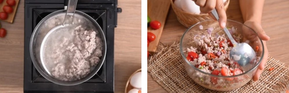 2.นำหมูสับไปลวกให้สุกแล้วพักไว้ก่อน