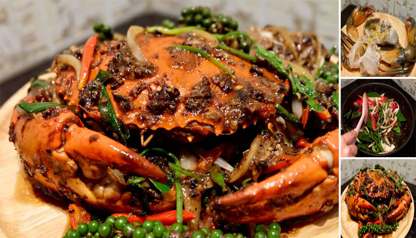 ปูผัดพริกไทยดำ รสชาติเข้มข้นเผ็ดร้อน หอมกลิ่นพริกไทย